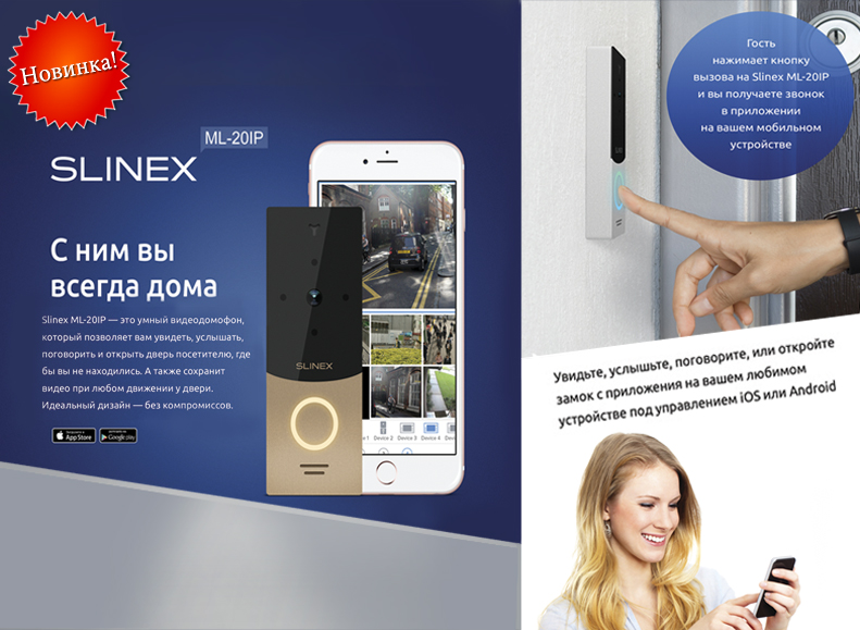 Slinex ML-20IP – это уникальная видеопанель с IP камерой, которая может транслировать видеоизображение прямо на экран мобильного телефона, без подключения внутреннего монитора!