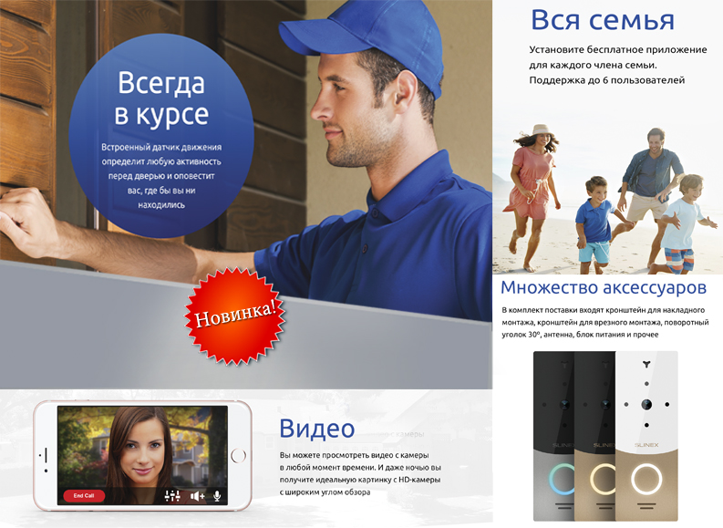 | Особенность | Подсветка кнопки. Выносная антенна Wi-Fi. Удаленный просмотр со смартфонов. Переадресация вызова на приложение на мобильном телефоне, встроенная память для записи видеороликов, широкоугольный объектив |