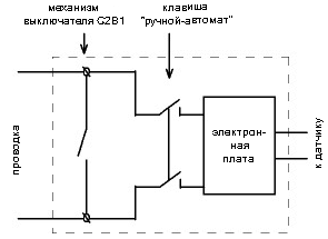 - в ручном режиме обеспечивает возможность управления светом при помощи механического выключателя с крупноразмерной клавишей;