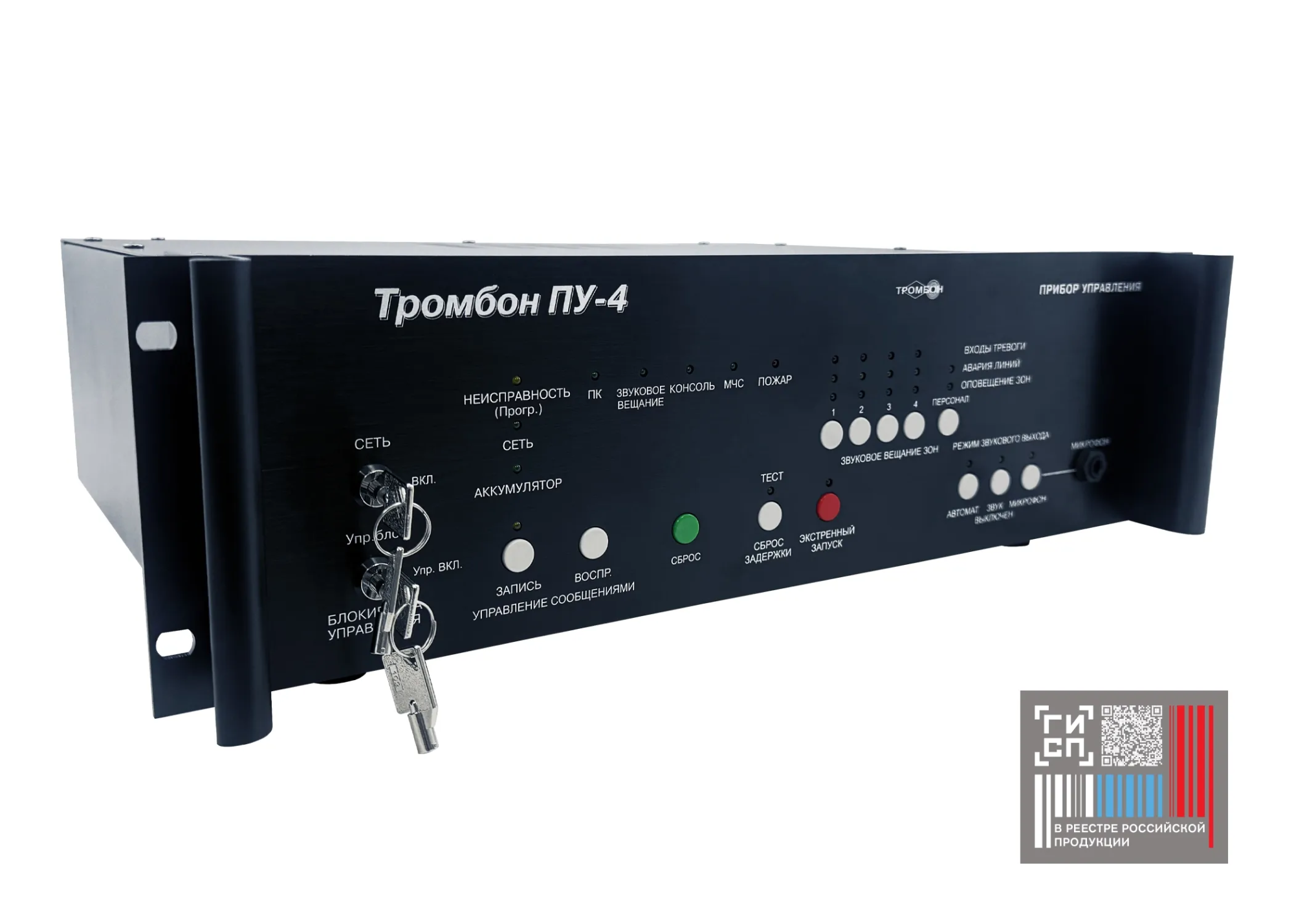 Речевое, звуковое и световое оповещение в ручном и автоматическом режимах;