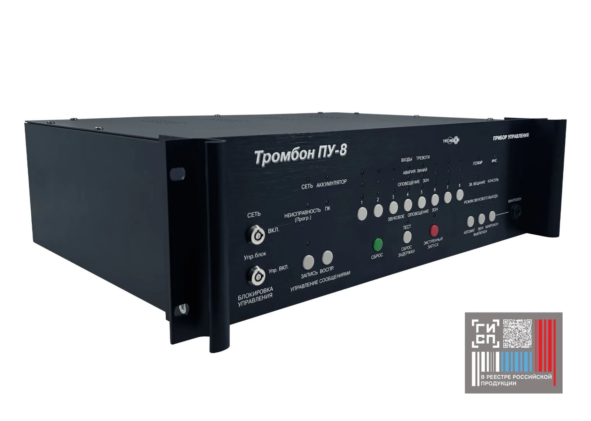 Речевое, звуковое и световое оповещение в ручном и автоматическом режимах;