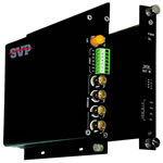 Оптоволоконные устройства серии SVP-4X0DB обеспечивают передачу 4 видеосигналов и приемо-передачу 1 или 2 сигналов управления (данных) по одному многомодовому или одномодовому оптическому волокну с использованием 10-битного цифрового кодирования высокого качества.