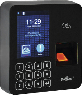 Терминал BioSmart-WTC2 предназначен для учета рабочего времени сотрудников на предприятиях посредством идентификации по отпечаткам пальцев и RFID картам. Позволяет управлять замком, турникетом (в одну сторону), другими исполнительными устройствами.