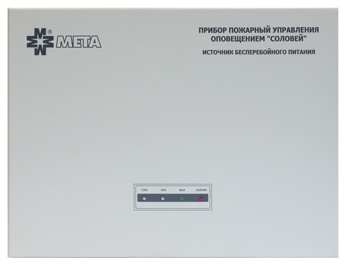 Соловей-ИБП обеспечивает бесперебойное питание блоков Соловей-ЦБ и Соловей-БР от сети 220 В 50 Гц или резервное питания от двух аккумуляторов 12 В, 7-12А/ч.