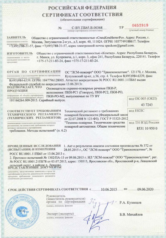 Оповещатель звуковой ПКИ-РО предназначен для использования в системах пожарной, охранной и охранно-пожарной сигнализации, системах автоматики, ограничения доступа, предупреждающей сигнализации и устанавливается внутри помещений отапливаемого и неотапливаемого типа. Модуль управления и громкоговорители выполнены в виде самостоятельных узлов. Тип передаваемого сообщения определяется заказчиком.Для покупки товара в нашем интернет-магазине выберите понравившийся товар и добавьте его в корзину. Далее перейдите в Корзину и нажмите на «Оформить заказ» или «Быстрый заказ».